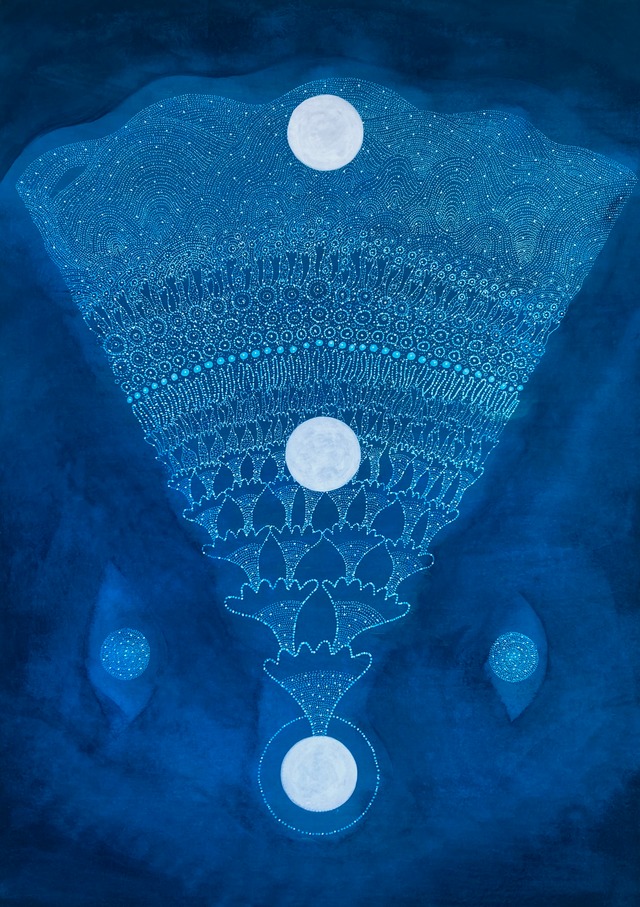 海の鏡 A1サイズ 縦841x横594厚さ27mm 重さ1600g 展示用ワイヤーに吊るすか木ねじのL字フックをご使用ください。 額装はしていませんが通常このまま展示出来ます。 シナベニヤの木版にアクリル絵の具で彩色 湿度の高い場所や直射日光に当たる場所はお避けください。 その他ご質問はメールにてお問い合わせください。 Uminokagami A1 size 841 × 594 mm, depth 27 mm Weight: 1,600 g The work can be hung using exhibition wire or mounted with L-shaped wood screw hooks. It is unframed, but designed to be displayed as is. Acrylic on plywood panel (Shina veneer). Please avoid displaying in areas of high humidity or in direct sunlight. For further inquiries, please contact us by email.
