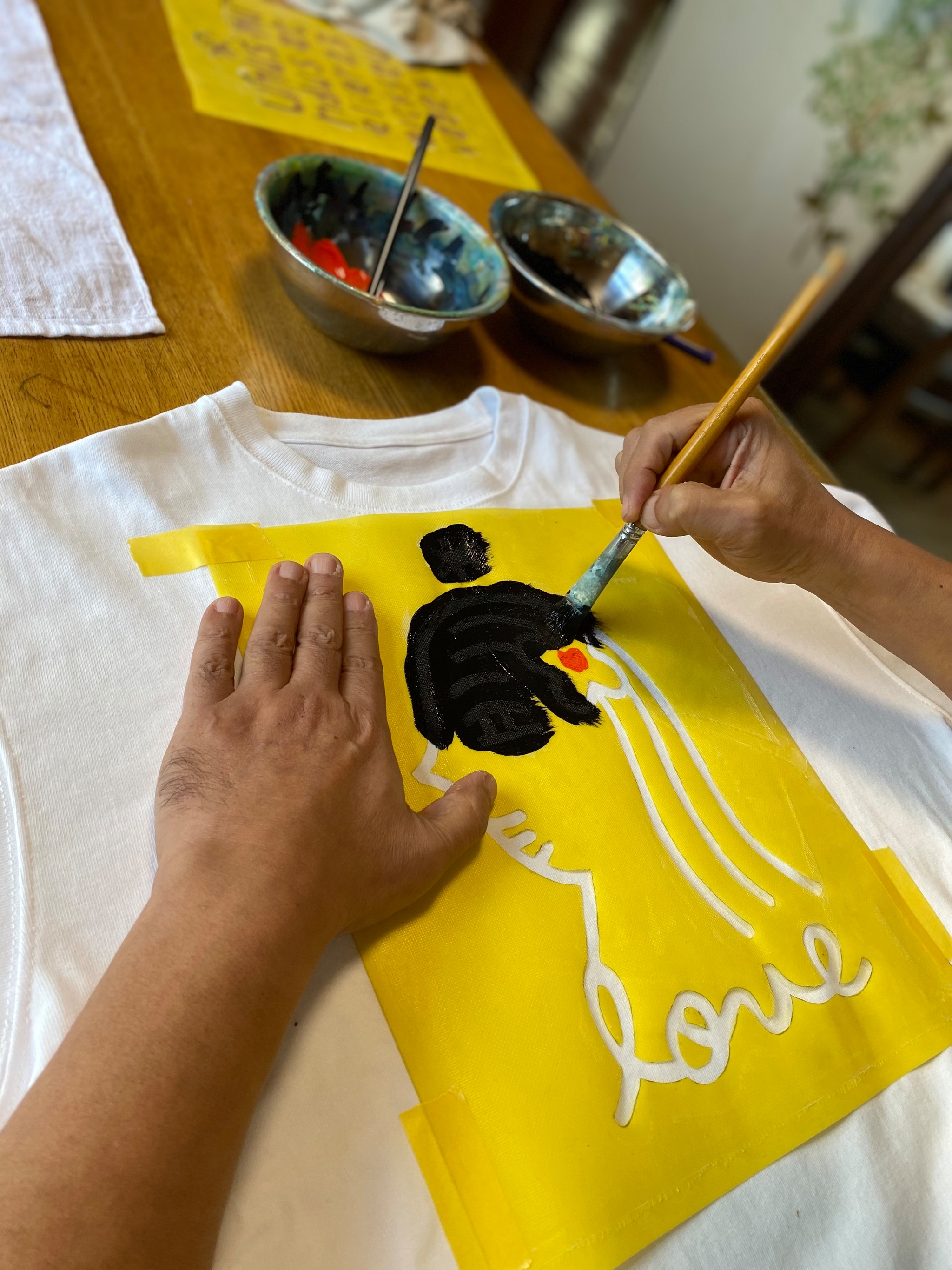 顔料インクの為当初はプリント部分に硬さがありますが、洗濯を繰り返すと次第に馴染んで布に馴染んで来ます。